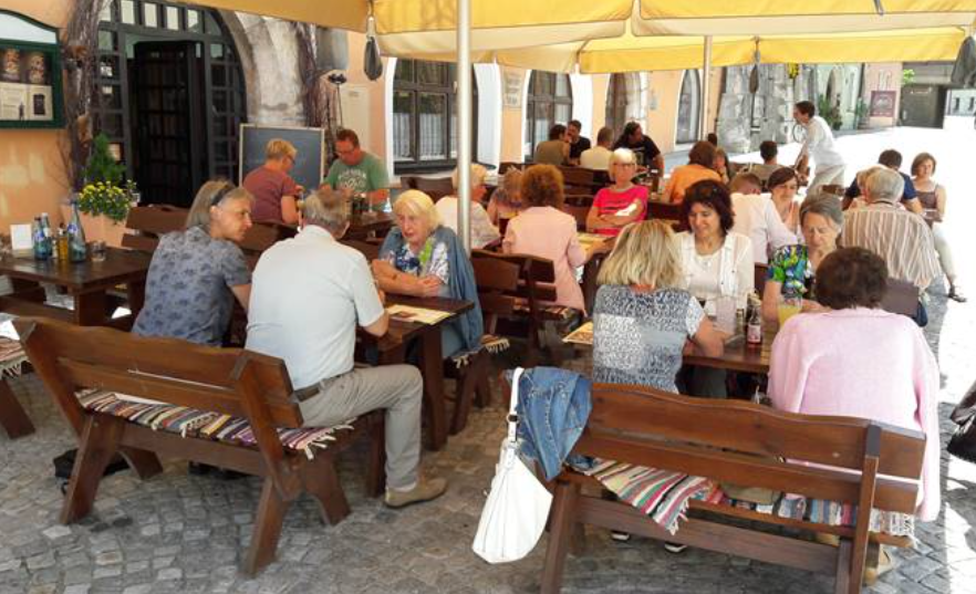 Im Gastgarten des Gasthauses Geisterburg in Hall trafen wir uns bei herrlichem Sommerwetter. Die Geburtstagskinder mit halbrunden und runden Jahrestagen wurden mit einem Blümchen bedacht