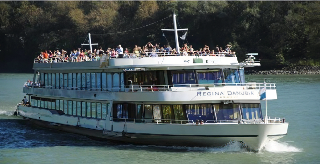 Nach dem gemeinsamen Frühstück, checken wir gemütlich aus. Unser Chauffeur holt uns ab und verstaut das Gepäck. Anschließend bringt er uns zum Hafen, wo uns das Luxusschiff „Regina“ erwartet. Dort sind für uns Plätze reserviert. Wir starten um 12:00 Uhr Richtung Passau. Während der Fahrt auf der Donau genießen wir die tolle Aussicht, die wir vom Schiff aus haben, sowie ein großes, warmes und kaltes Buffet. Nach 120 km erreichen wir um 16:00 Uhr Passau, wo wir noch 2 bis 3 Stunden Aufenthalt haben.