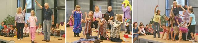 Um 16 30 Uhr begann die Vorstellung in der vollbesetzten Aula des Gymnasiums. Die Eltern waren von den Darbietungen ihrer Sprösslinge begeistert und bedankten sich bei uns für den schönen Tag, den wir den Kindern bereitet hatten. Zur Erinnerung bekamen alle Mitwirkenden eine Urkunde für die Teilnahme am Mini-Musical "Anne Kaffeekanne" und konnten eine Video-DVD und Foto-CD bestellen.