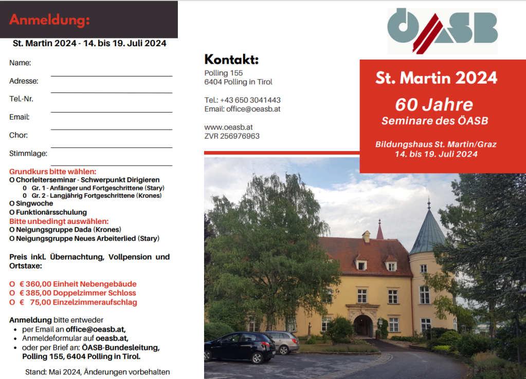 Es freut uns die Termine für die Seminare des Österreichischen Arbeitersängerbundes für das Jahr 2022 bekannt zu geben: